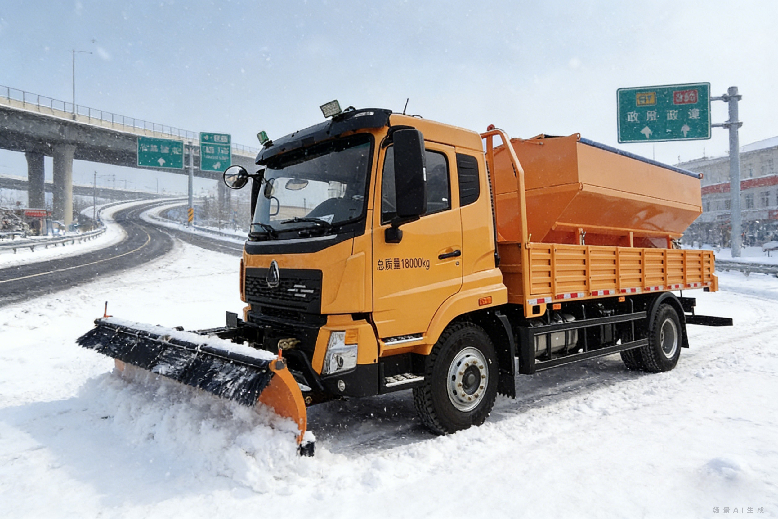 本款多功能除雪车是专为城市道路及高速公路破冰除雪打造的专用装备,基于优质载货车平台改装而成,核心由货箱内置撒布机、除雪机具动力系统及挂装系统构成,可实现扫雪、推雪、撒布等多场景作业需求。车辆前部挂架支持雪刷与雪铲快速挂装及互换,底盘发动机自带取力功能,为除雪机具提供稳定动力,作业速度最高可达60公里/小时。所有机具控制功能均集成于驾驶室内部,操作人员无需下车即可完成全流程作业,大幅提升作业效率。