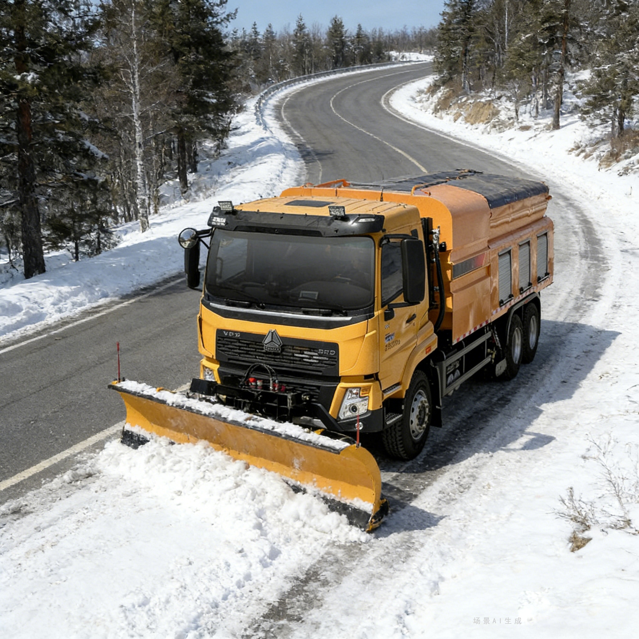 依托重汽专用底盘与大马力发动机的黄金组合,设备在-30℃极寒环境下仍能保持强劲动力输出,无论是城市道路的薄雪还是桥梁的压实冰层,都能高效应对,作业场景覆盖广度远超普通设备。