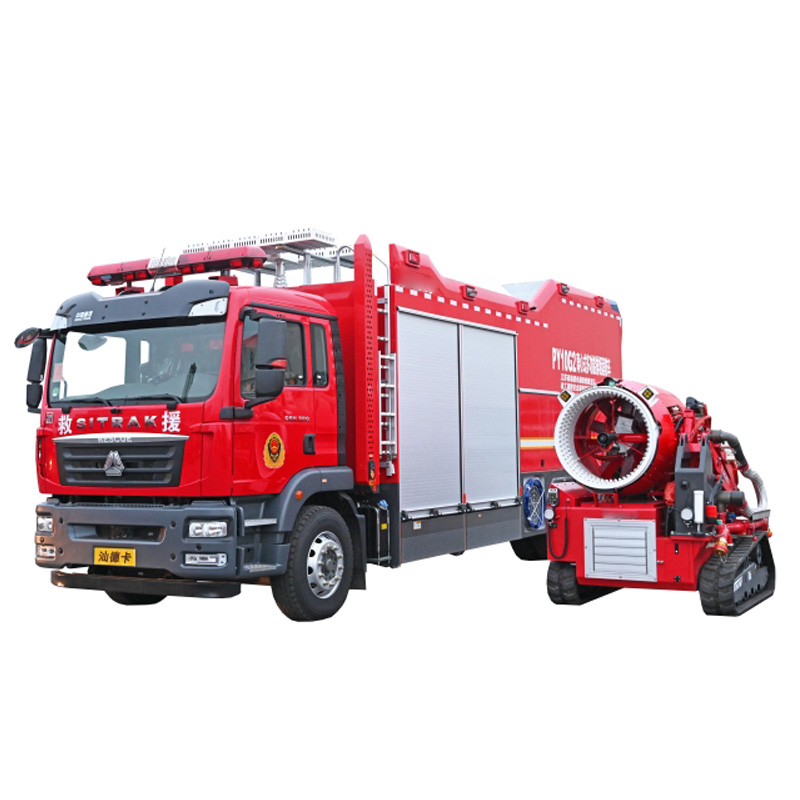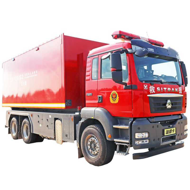 该车采用中国重汽ZZ520系列4×4全驱越野底盘,发动机功率大、行驶速度高、涉水能力强,车辆尺寸更紧凑,更机动灵活。同时具备越野、起吊、挖掘、破碎、抓取、剪切、切割、破障、拖拽等功能,可实现车上快速切换作业机具。另外还配置了细水雾灭火器等特殊需求模块,是一款适用于地质灾害、城市、道路救援等突发事故的救援车辆。