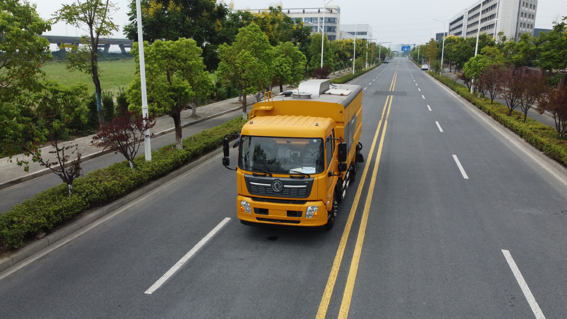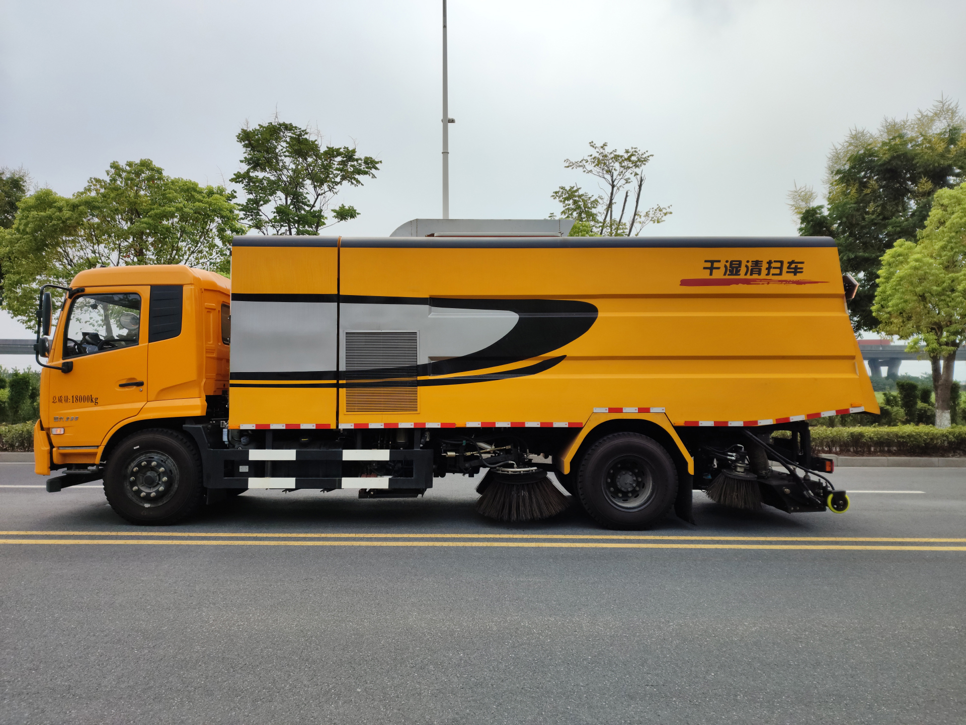 干湿清扫车以东风天锦二类汽车底盘为基础,加装自主研发的干湿两用清扫装置,专为多场景路面清洁设计。其核心动力配置优势显著:采用静音高速离心式风机提供吸扫动力,兼顾高效吸扫效果与低噪音表现;搭配大功率玉柴发动机作为副机,保障作业稳定性。