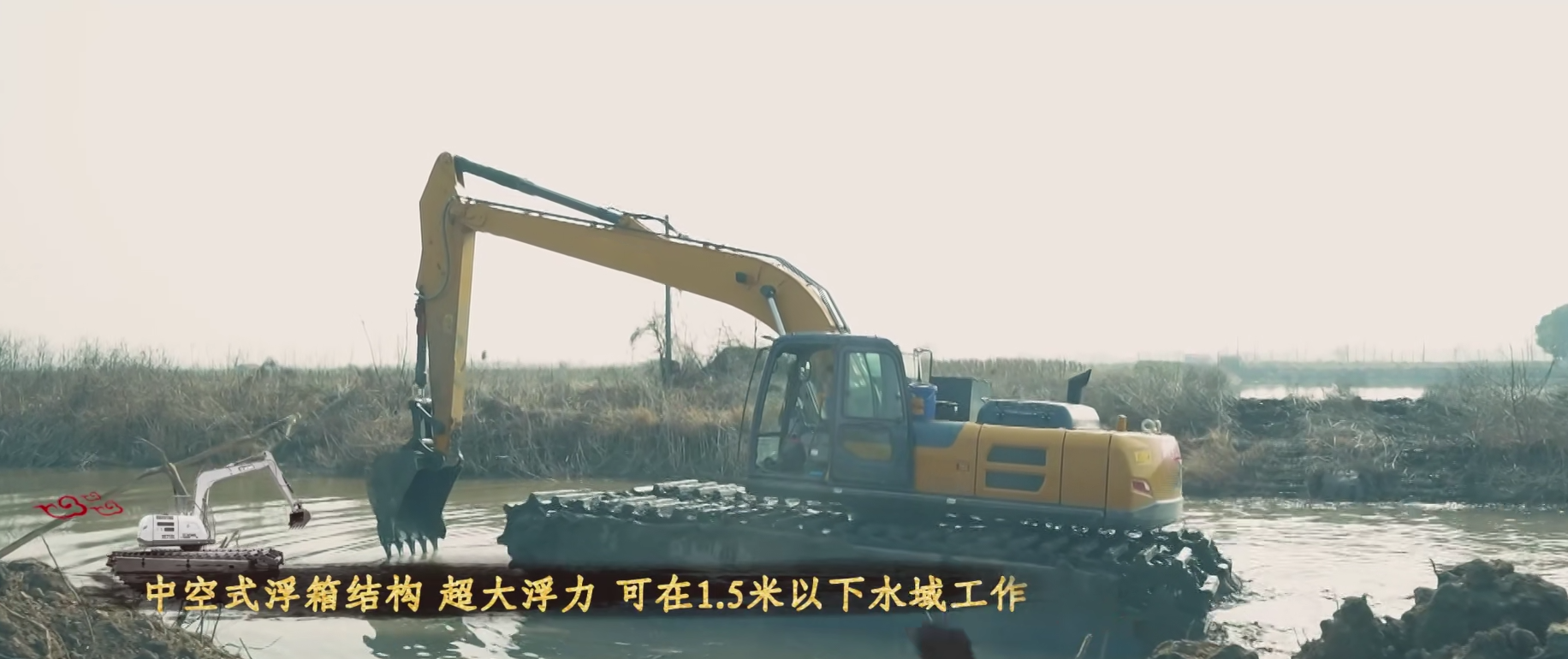 1、地面适配优异,通行更安全:履带接地面积是普通挖掘机的4-5倍,中空式浮箱结构带来超低地面接触压力,可轻松适应松软地面,在沼泽滩涂作业如履平地;最大作业水深可达1.5m,二排链条结构提升水中行走安全性。