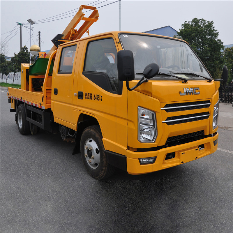 3、作业灵活性:车载工作平台可实现 260 度旋转,在左右两侧进行施工时,整车无需调头调整位置,有效节省作业准备时间,提升施工效率。