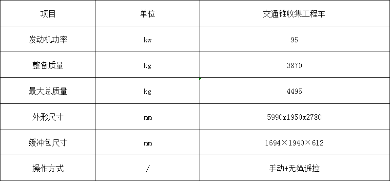 交通锥收集工程车,双机械臂交通锥收放机,具有交通锥自动施放、收取、收取功能,可实现自动收放车道分界线上的交通锥,并且整车不超车道分界线。适用于道路施工、临时封道等导改作业,也可进行长距离的封道作业。该设备采用人机配合、半自动化作业,完成锥桶斜线、直线码放和收取功能。