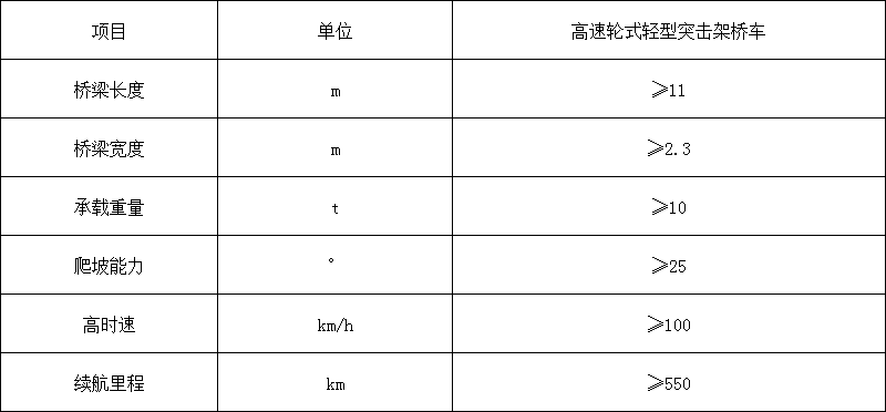 1、机动性强:最高行驶速度>100km/h,快速到达指定现场架设应急临时桥梁,保证救灾车辆的应急通行。