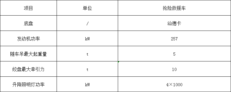 抢险救援消防车配备发电照明系统、牵引绞盘系统、随车起重机系统,上装采用铝型材箱体框架并配备了各种抢险救援器材,该车主要适用于高速公路事故、城市突发公共安全事故以及各种化工场所突发事故的救援。