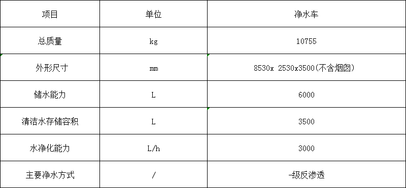 移动净水车又叫净水车,也叫车载式(移动)水处理设备。净水车是由二类底盘加净水车专用大厢,锅炉仓,净水仓,水箱,开水加热系统,照明系统,供水加压系统,排水系统组成。采用反渗透技术制做净化饮用水。净水车是为消防队伍野外执行任务、扑救重特大火灾和抢险救援任务提供饮用水保障的需要而开发研制的一种机动、能把野外较差水源净化为可直接饮用的净水的车辆装备.是一种移动方便,灵活,独立的净水系统。能够对江、河、湖、塘等地面水、地下水和海水、苦咸水进行处理,达到生活用水标准。移动净水车被广泛应用于地震、洪水等自然灾害及战时临时供水。净水车的应用范围:军队作战,部队野外作业、部队战地演习、战地医院; 地震、洪灾、泥石流等自然灾害发生时应急供水; 其他突发情况的应急供水。