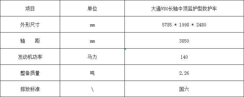 大通V80长轴中顶监护型救护车