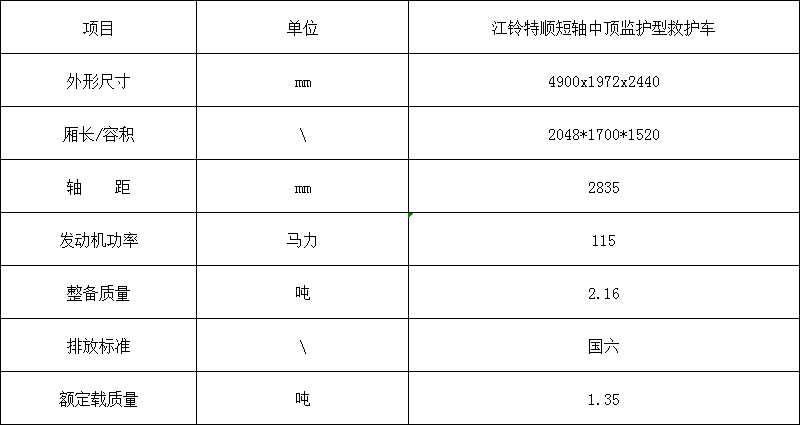 江铃特顺短轴中顶监护型救护车