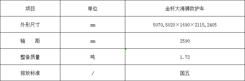 采用金杯大海狮SY5033XJH-D1SBH车身,配置沈阳新光华晨汽车发动机公司发动机马力,国五排放标准,轴距2590(mm),整备质量1.72吨,五挡变速箱,带动力转向,带原厂空调,ABS、中控锁、电动门窗。该车上蓝牌,城区道路不限行。